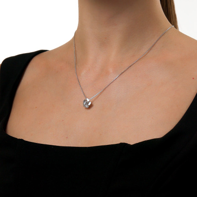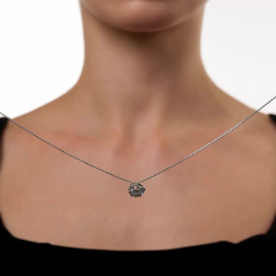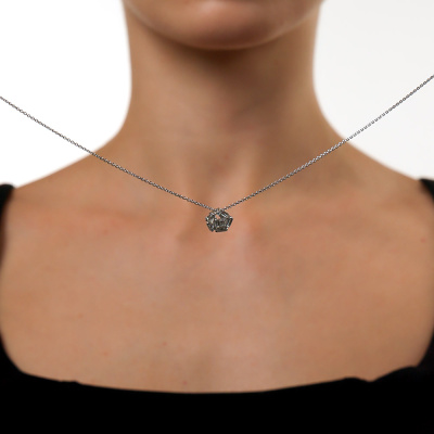 Подвеска с 7 бриллиантами выращенными, 0.81 карат, огранка багет 33 грани, цвет 3, чистота 6, тип огранки А; Белое золото 585 пробы.
