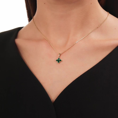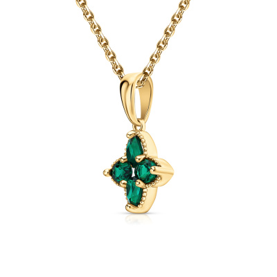 Подвеска с 4 гидротермальными изумрудами, 0.57 карат; 1 гидротермальным изумрудом, 0.04 карат; Желтое золото 585 пробы.