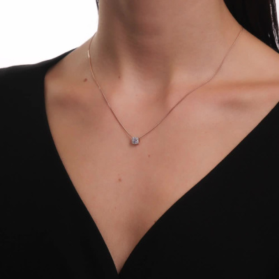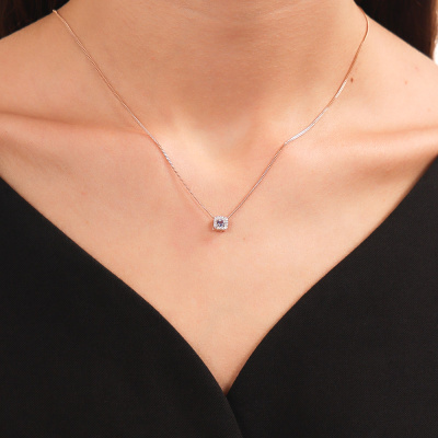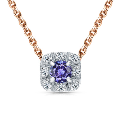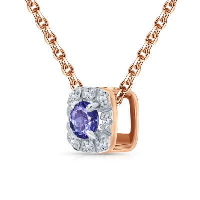 Подвеска с 8 бриллиантами природными, 0.02 карат, огранка круг 17 граней, цвет 2, чистота 2, тип огранки А; 1 танзанитом природным, 0.13 карат; Розовое золото 585 пробы.