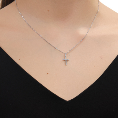Подвеска с 11 бриллиантами природными, 0.02 карат, огранка круг 17 граней, цвет 2, чистота 2, тип огранки А; Белое золото 585 пробы.