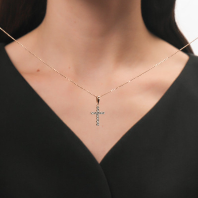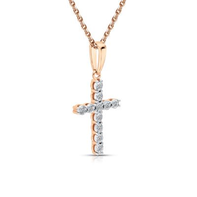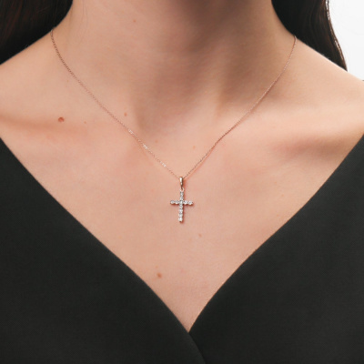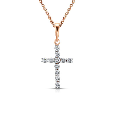 Подвеска с 11 бриллиантами природными, 0.03 карат, огранка круг 17 граней, цвет 2, чистота 2, тип огранки А; Розовое и белое золото 585 пробы.