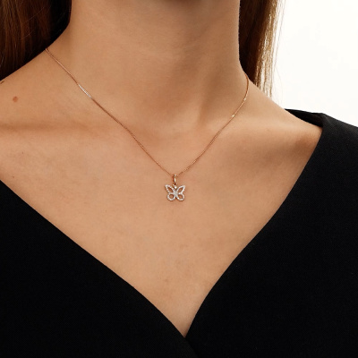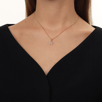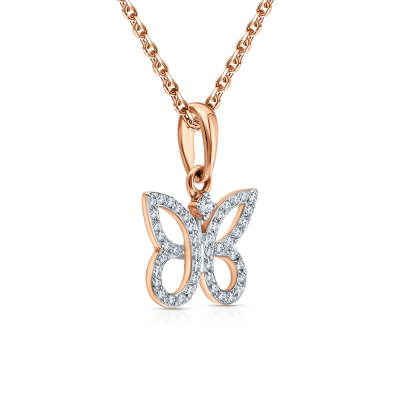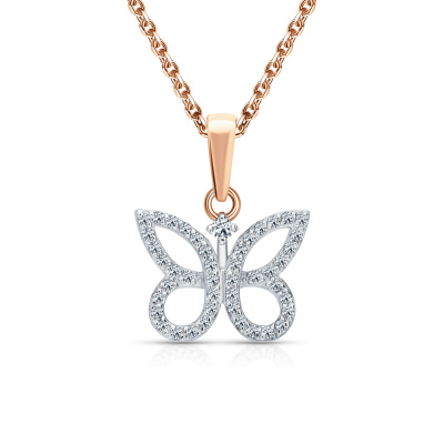 Подвеска с 1 бриллиантом природным, 0.01 карат, огранка круг 57 граней, цвет 4, чистота 6, тип огранки А; 44 бриллиантами природными, 0.11 карат, огранка круг 17 граней, цвет 2, чистота 2, тип огранки А; Розовое золото 585 пробы.