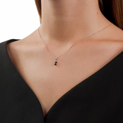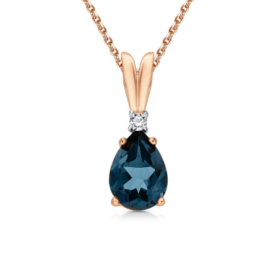 Подвеска с 1 бриллиантом природным, 0.01 карат, огранка круг 57 граней, цвет 3, чистота 6, тип огранки А; 1 топазом лондон природным, 0.73 карат; Розовое золото 585 пробы.