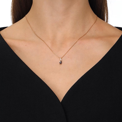 Подвеска с 3 бриллиантами природными, 0.01 карат, огранка круг 17 граней, цвет 2, чистота 2, тип огранки А; 1 гранатом природным, 0.5 карат; Розовое золото 585 пробы.