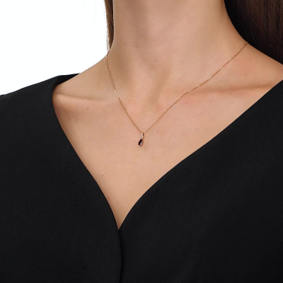 Подвеска с 3 бриллиантами природными, 0.01 карат, огранка круг 17 граней, цвет 2, чистота 2, тип огранки А; 1 гранатом природным, 0.44 карат; Розовое золото 585 пробы.