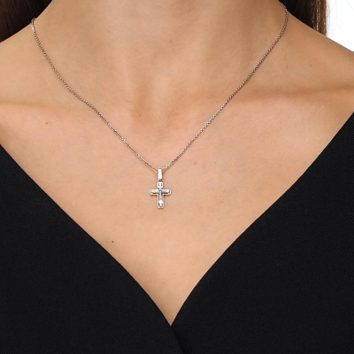 Подвеска с 4 бриллиантами природными, 0.03 карат, огранка круг 17 граней, цвет 2, чистота 2, тип огранки А; Белое золото 585 пробы.