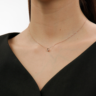 Подвеска с 1 бриллиантом природным, 0.01 карат, огранка круг 57 граней, цвет 3, чистота 6; Розовое золото 585 пробы.