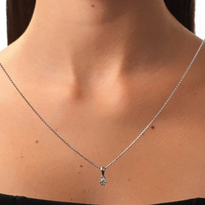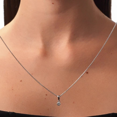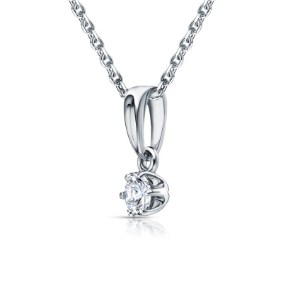 Подвеска с 1 бриллиантом выращенным, 0.26 карат, огранка круг 57 граней, цвет 3, чистота 5, тип огранки А; Белое золото 585 пробы.