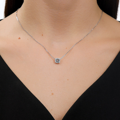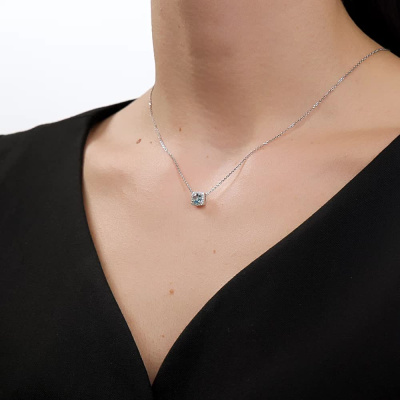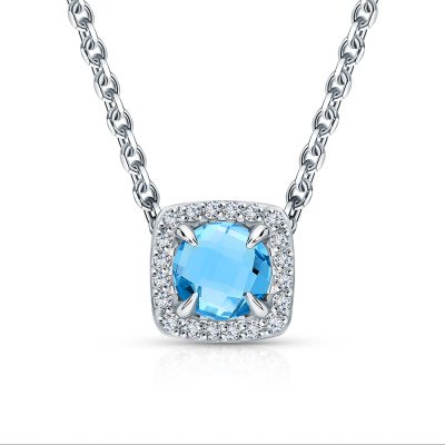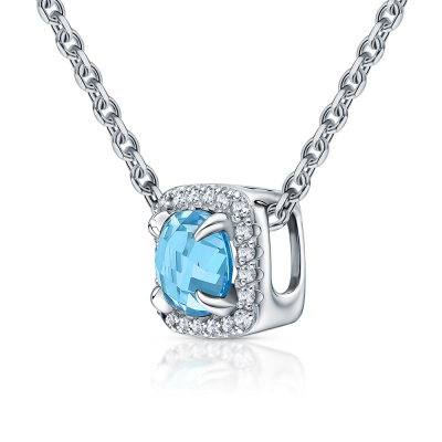 Подвеска с 4 бриллиантами природными, 0.01 карат, огранка круг 17 граней, цвет 2, чистота 2, тип огранки А; 16 бриллиантами природными, 0.04 карат, огранка круг 17 граней, цвет 2, чистота 2, тип огранки А; 1 топазом свисс природным, 0.57 карат; Белое золото 585 пробы.