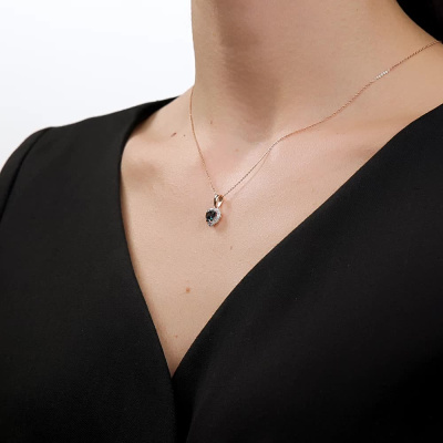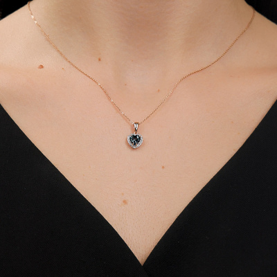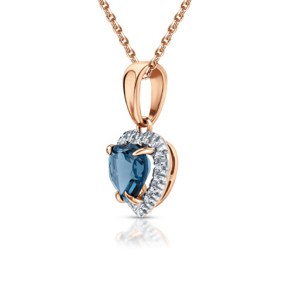 Подвеска с 17 бриллиантами природными, 0.05 карат, огранка круг 17 граней, цвет 2, чистота 2, тип огранки А; 1 топазом лондон природным, 0.92 карат; Розовое золото 585 пробы.