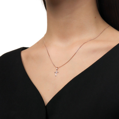 Подвеска с 1 бриллиантом природным, 0.001 карат, огранка круг 17 граней, цвет 2, чистота 2, тип огранки Б; Розовое золото 585 пробы.