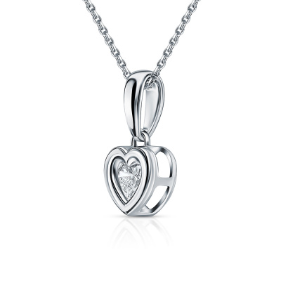 Подвеска с 1 бриллиантом выращенным, 0.44 карат, огранка сердце 57 граней, цвет 4, чистота 5, тип огранки А; Белое золото 585 пробы.
