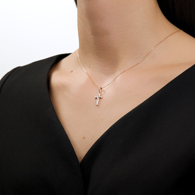 Подвеска с 1 бриллиантом природным, 0.004 карат, огранка круг 17 граней, цвет 2, чистота 2, тип огранки А; Розовое золото 585 пробы.