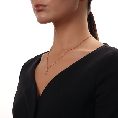Подвеска с 3 сапфирами черными природными, 0.13 карат; 2 сапфирами черными природными, 0.04 карат; Розовое золото 585 пробы.