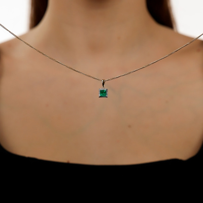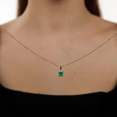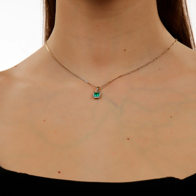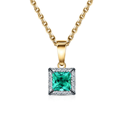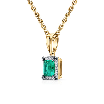 Подвеска с 1 изумрудом выращенным Колумбия, 0.54 карат; 12 бриллиантами выращенными, 0.07 карат, огранка круг 57 граней, цвет 3, чистота 5, тип огранки А; Желтое золото 585 пробы.