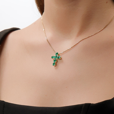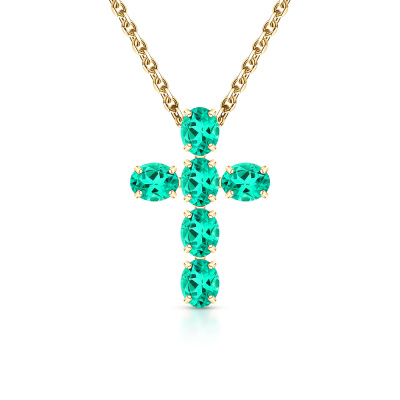 Подвеска с 6 изумрудами выращенными Колумбия, 1.63 карат; Желтое золото 585 пробы.
