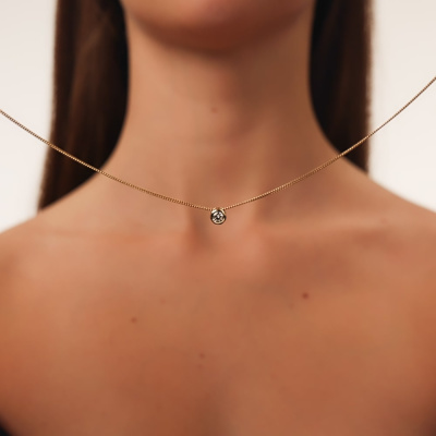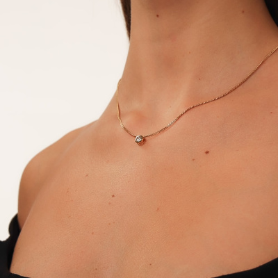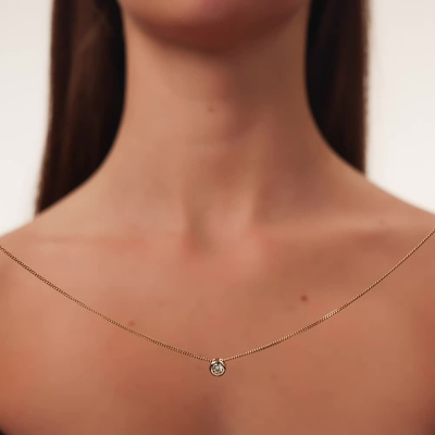 Подвеска с 1 бриллиантом выращенным, 0.32 карат, огранка круг 57 граней, цвет 4, чистота 5, тип огранки А; Желтое золото 585 пробы.