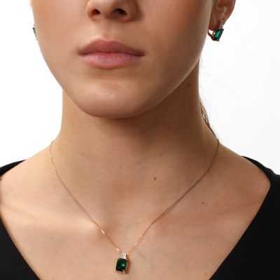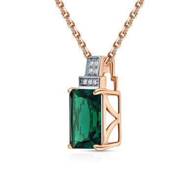 Подвеска с 7 бриллиантами природными, 0.03 карат, огранка круг 17 граней, цвет 2, чистота 2; 1 гидротермальным изумрудом, 2.21 карат; Розовое золото 585 пробы.