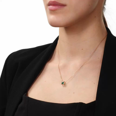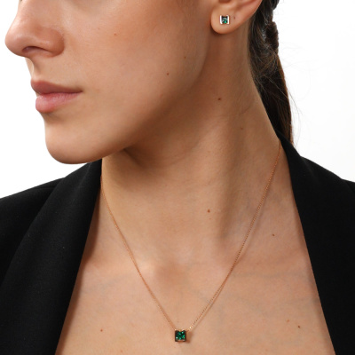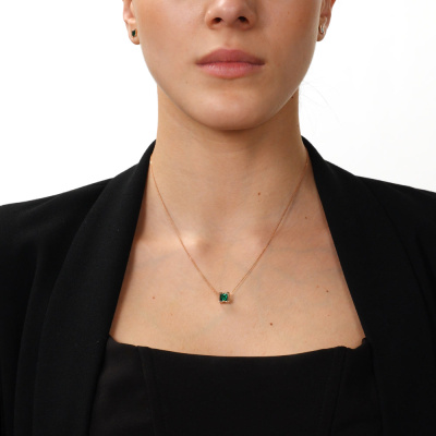 Подвеска с 1 гидротермальным изумрудом, 0.52 карат; Розовое золото 585 пробы.