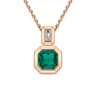 Подвеска с 1 гидротермальным изумрудом, 1.37 карат; 1 топазом бесцветным природным, 0.13 карат; Розовое золото 585 пробы.