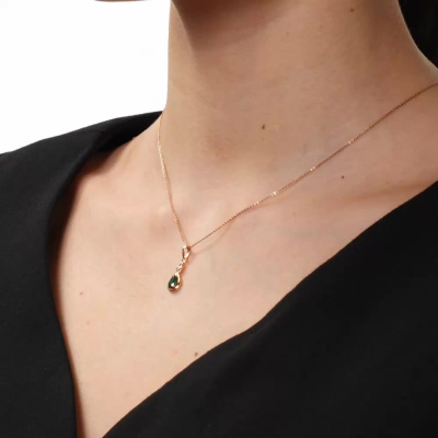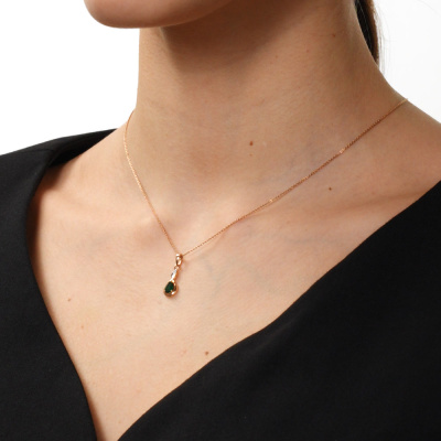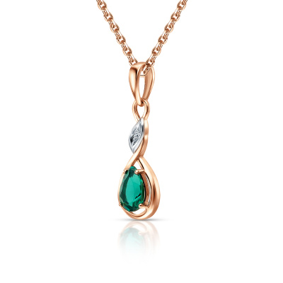 Подвеска с 1 бриллиантом природным, 0.004 карат, огранка круг 17 граней, цвет 2, чистота 2; 1 гидротермальным изумрудом, 0.37 карат; Розовое золото 585 пробы.