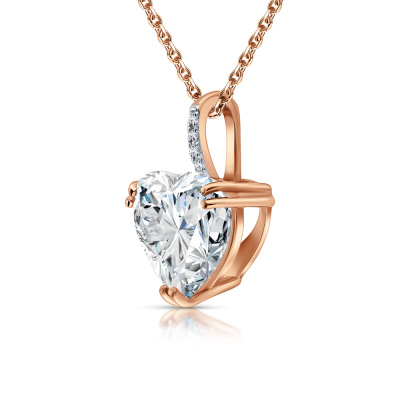 Подвеска с 4 бриллиантами природными, 0.007 карат, огранка круг 17 граней, цвет 2, чистота 2, тип огранки А; 1 горным хрусталем природным, 1.78 карат; Розовое золото 585 пробы.