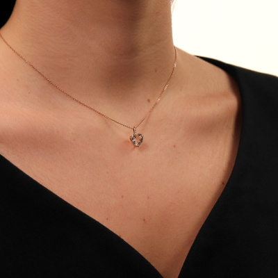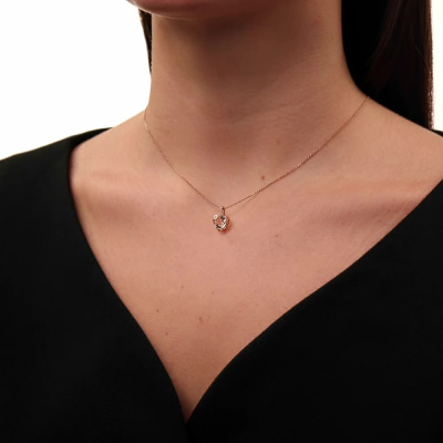 Подвеска с 4 бриллиантами природными, 0.007 карат, огранка круг 17 граней, цвет 2, чистота 2, тип огранки А; 1 горным хрусталем природным, 1.65 карат; Розовое золото 585 пробы.
