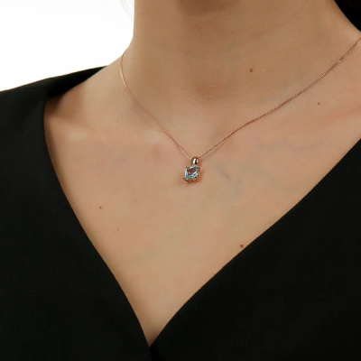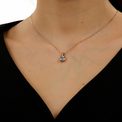 Подвеска с 4 бриллиантами природными, 0.01 карат, огранка круг 17 граней, цвет 2, чистота 2, тип огранки А; 1 топазом скай природным, 2.02 карат; Розовое золото 585 пробы.