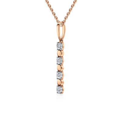 Подвеска с 4 бриллиантами природными, 0.02 карат, огранка круг 57 граней, цвет 3, чистота 6, тип огранки А; Розовое и белое золото 585 пробы.