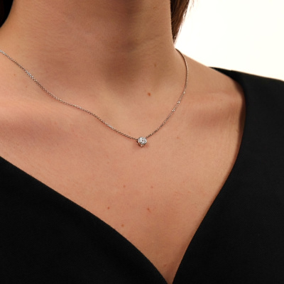 Подвеска с 1 бриллиантом природным, 0.004 карат, огранка круг 17 граней, цвет 3, чистота 3, тип огранки Б; Серебро 925 пробы.