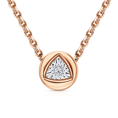 Подвеска с 1 бриллиантом природным, 0.009 карат, огранка круг 57 граней, цвет 3, чистота 6, тип огранки А; Розовое и белое золото 585 пробы.