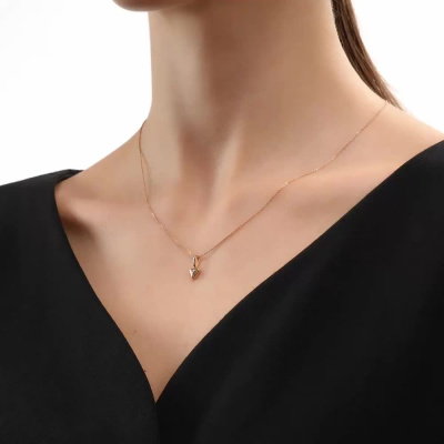Подвеска с 1 бриллиантом природным, 0.003 карат, огранка круг 17 граней, цвет 2, чистота 2, тип огранки А; Розовое и белое золото 585 пробы.