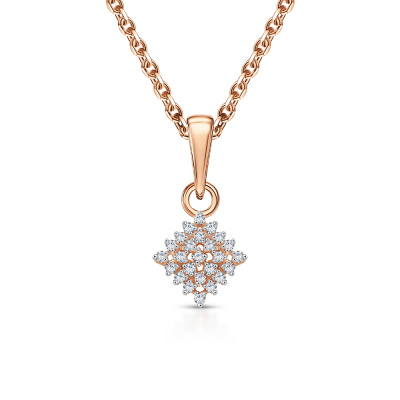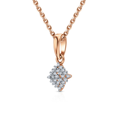 Подвеска с 25 бриллиантами природными, 0.06 карат, огранка круг 17 граней, цвет 2, чистота 2, тип огранки А; Розовое золото 585 пробы.