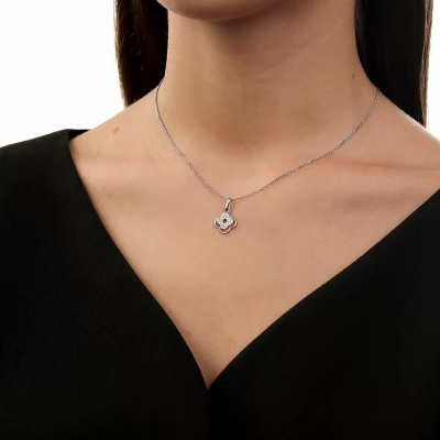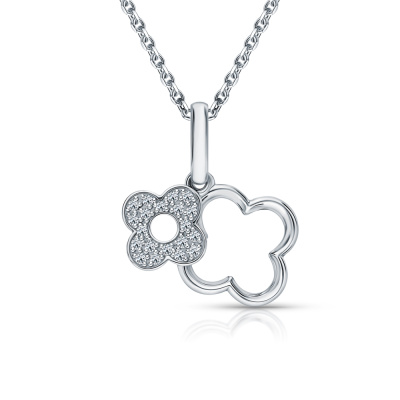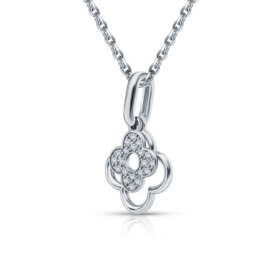 Подвеска с 20 бриллиантами природными, 0.08 карат, огранка круг 17 граней, цвет 2, чистота 2, тип огранки Б; Белое золото 585 пробы.
