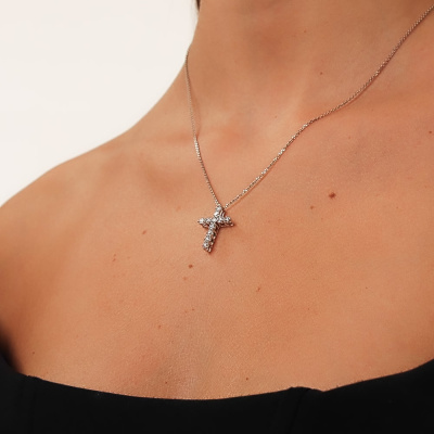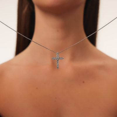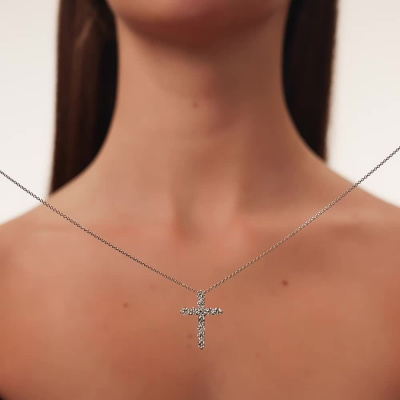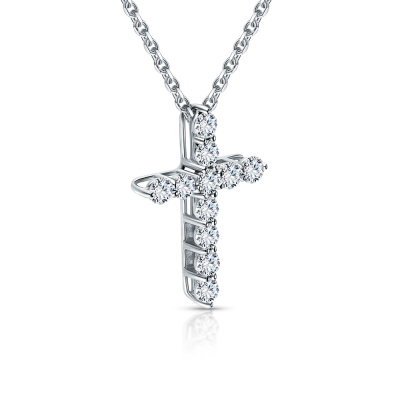 Подвеска с 11 бриллиантами выращенными, 1.16 карат, огранка круг 57 граней, цвет 3, чистота 5, тип огранки А; Белое золото 585 пробы.