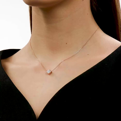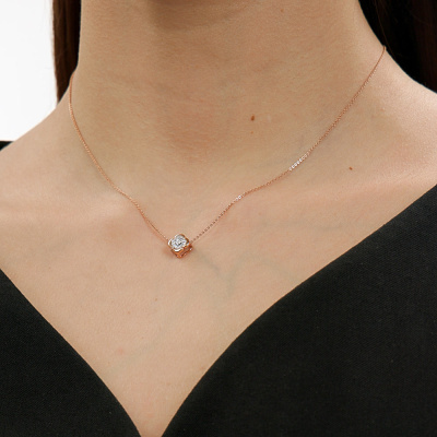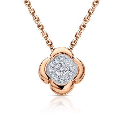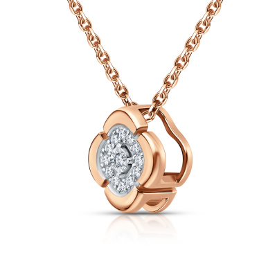 Подвеска с 1 бриллиантом природным, 0.004 карат, огранка круг 57 граней, цвет 3, чистота 6, тип огранки А; 12 бриллиантами природными, 0.03 карат, огранка круг 17 граней, цвет 2, чистота 2, тип огранки А; Розовое и белое золото 585 пробы.
