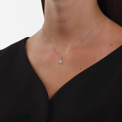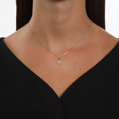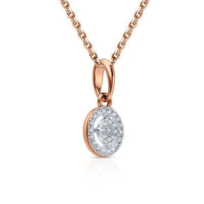 Подвеска с 27 бриллиантами природными, 0.07 карат, огранка круг 17 граней, цвет 2, чистота 2, тип огранки А; Розовое золото 585 пробы.