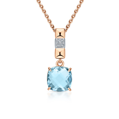 Подвеска с 4 бриллиантами природными, 0.01 карат, огранка круг 17 граней, цвет 2, чистота 2, тип огранки А; 1 топазом скай природным, 2.67 карат; Белое золото 585 пробы.