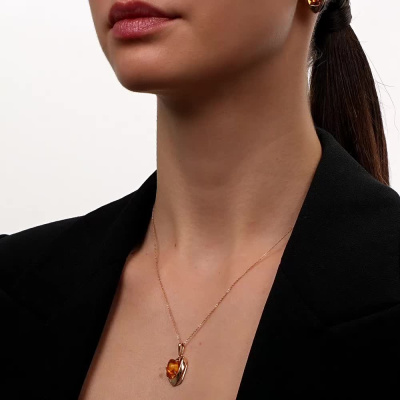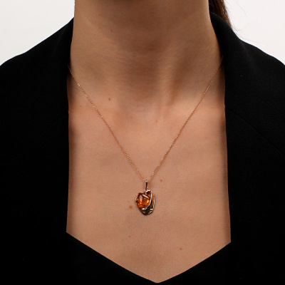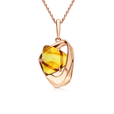 Подвеска с 1 янтарем желтым природным, 1.03 карат; Розовое золото 585 пробы.