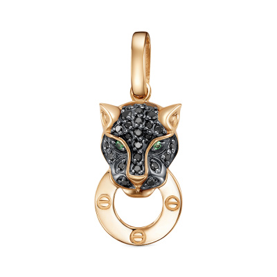 Подвеска с 2 бриллиантами черными природными облагороженными, 0.01 карат, огранка круг 57 граней, цвет 7, чистота 6, тип огранки А; 2 изумрудами природными, 0.008 карат, цвет 3, чистота 3, тип огранки Б; 23 бриллиантами черными природными облагороженными, 0.08 карат, огранка круг 57 граней, цвет 7, чистота 6, тип огранки А; Розовое золото 585 пробы.