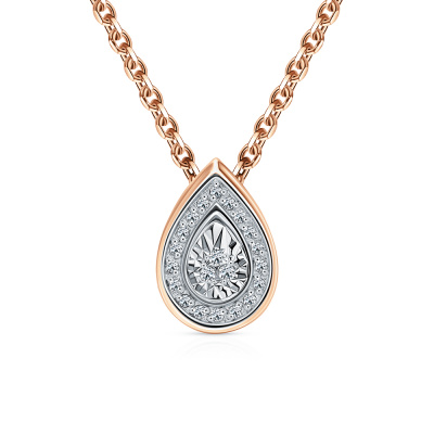 Подвеска с 3 бриллиантами природными, 0.01 карат, огранка круг 17 граней, цвет 2, чистота 2, тип огранки А; 18 бриллиантами природными, 0.03 карат, огранка круг 17 граней, цвет 2, чистота 2, тип огранки А; Розовое золото 585 пробы.