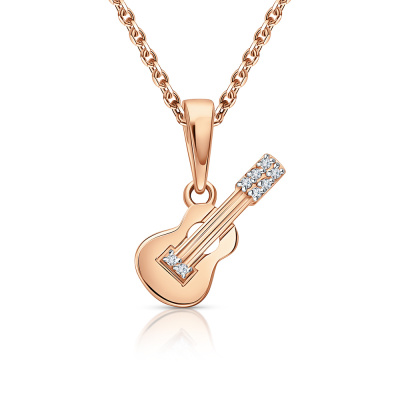 Подвеска с 8 бриллиантами природными, 0.02 карат, огранка круг 17 граней, цвет 2, чистота 2, тип огранки А; Розовое золото 585 пробы.