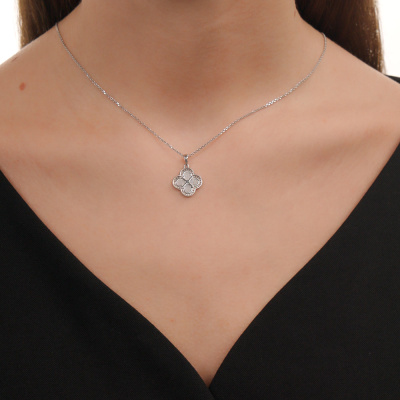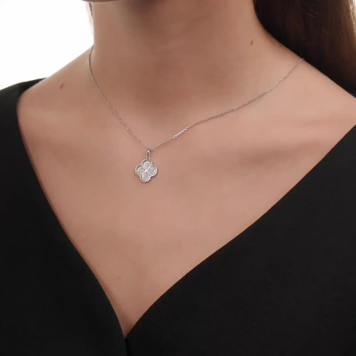 Подвеска с 36 бриллиантами природными, 0.12 карат, огранка круг 17 граней, цвет 2, чистота 2; Белое золото 585 пробы.