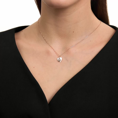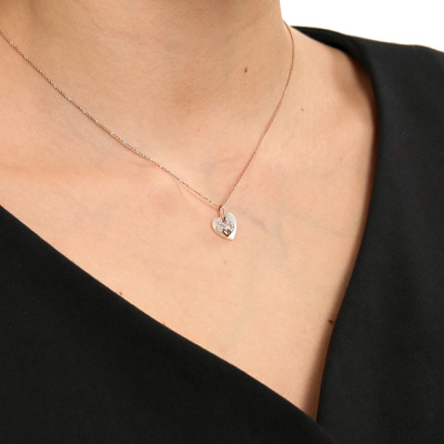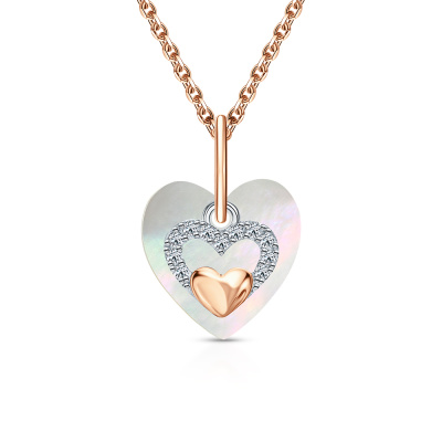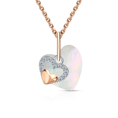 Подвеска с 11 бриллиантами природными, 0.03 карат, огранка круг 17 граней, цвет 2, чистота 2, тип огранки А; 1 перламутром белым природным; Розовое золото 585 пробы.