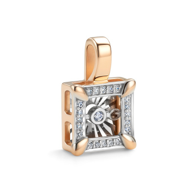 Подвеска с 1 бриллиантом природным, 0.01 карат, огранка круг 57 граней, цвет 4, чистота 6, тип огранки А; 20 бриллиантами природными, 0.06 карат, огранка круг 17 граней, цвет 2, чистота 3, тип огранки А; Розовое золото 585 пробы.