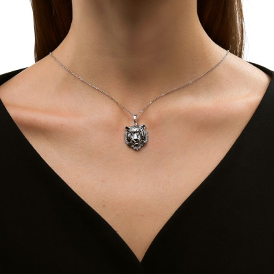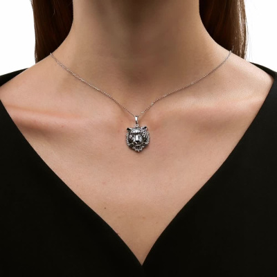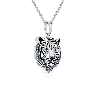Подвеска с 34 бриллиантами природными, 0.11 карат, огранка круг 57 граней, цвет 3, чистота 5, тип огранки А; 2 сапфирами природными, 0.03 карат, цвет 2, чистота 2, тип огранки В; эмаль; Белое золото 585 пробы.