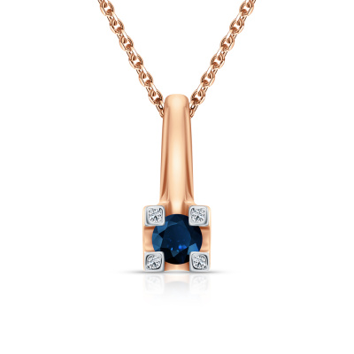 Подвеска с 4 бриллиантами природными, 0.009 карат, огранка круг 17 граней, цвет 2, чистота 2, тип огранки А; 1 сапфиром природным, 0.16 карат, цвет 2, чистота 2, тип огранки В; Розовое золото 585 пробы.