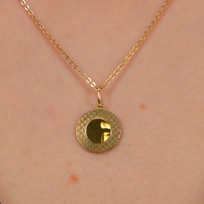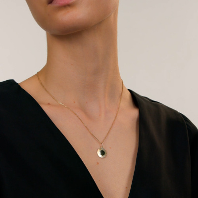 Золотое сияние — коллекция, где инновационные технологии обработки золота встречаются с безупречной красотой. Новый взгляд на сияние благородного металла. Поверхность украшения выполнена с применением декоративной резки по металлу, образующей множество округлых элементов, напоминающих пайетки. Такая фактура создаёт мягкую игру света: блики ярко переливаются по поверхности, придавая изделию выразительность и динамику. Этот эффект делает каждое изделие уникальным и заметным при любом освещении. Это лаконичное и стильное украшение, с которым легко будет сочетать любой образ из вашего гардероба. Дополните его другими изделиями из ассортимента Московского Цепевязального Завода, создав гармоничный комплект с кольцом, серьгами или подвеской.