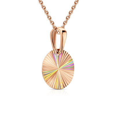 Золотое сияние — коллекция, где инновационные технологии обработки золота встречаются с безупречной красотой. Новый взгляд на сияние благородного металла. «Радужная алмазка» — это ювелирная технология, с помощью которой создают украшения с эффектом радужного сияния. При её использовании под воздействием ультразвуковых колебаний создаётся множество микроплоскостей, в результате чего свет отражается, переливаясь и играя всеми оттенками спектра. Этот эффект делает каждое изделие уникальным и заметным при любом освещении. Это лаконичное и стильное украшение, с которым легко будет сочетать любой образ из вашего гардероба. Дополните его другими изделиями из ассортимента Московского Цепевязального Завода, создав гармоничный комплект с кольцом, серьгами или подвеской.