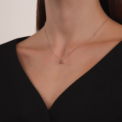 Подвеска с 1 бриллиантом природным, 0.01 карат, огранка круг 57 граней, цвет 3, чистота 5, тип огранки А; Розовое и белое золото 585 пробы.
